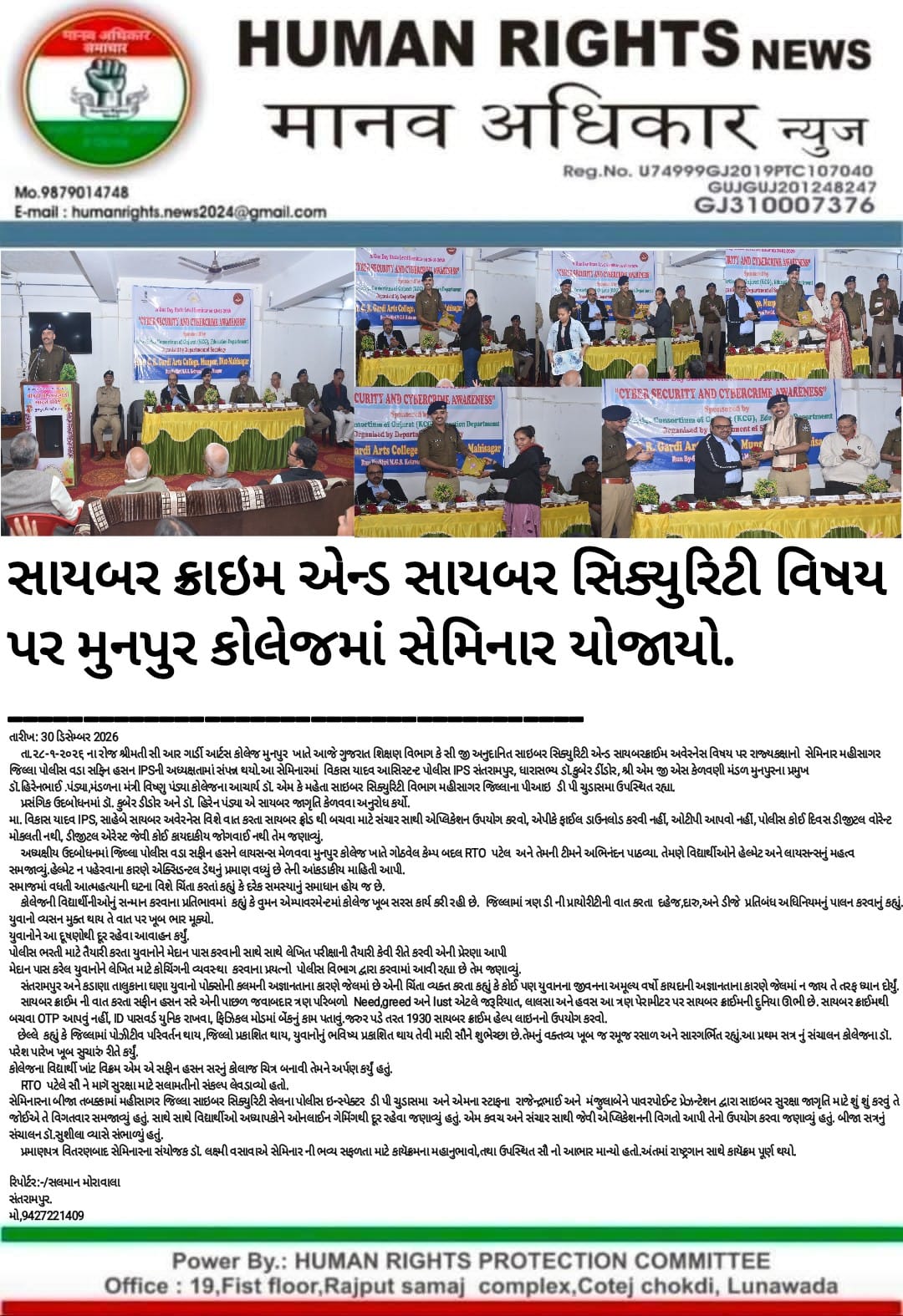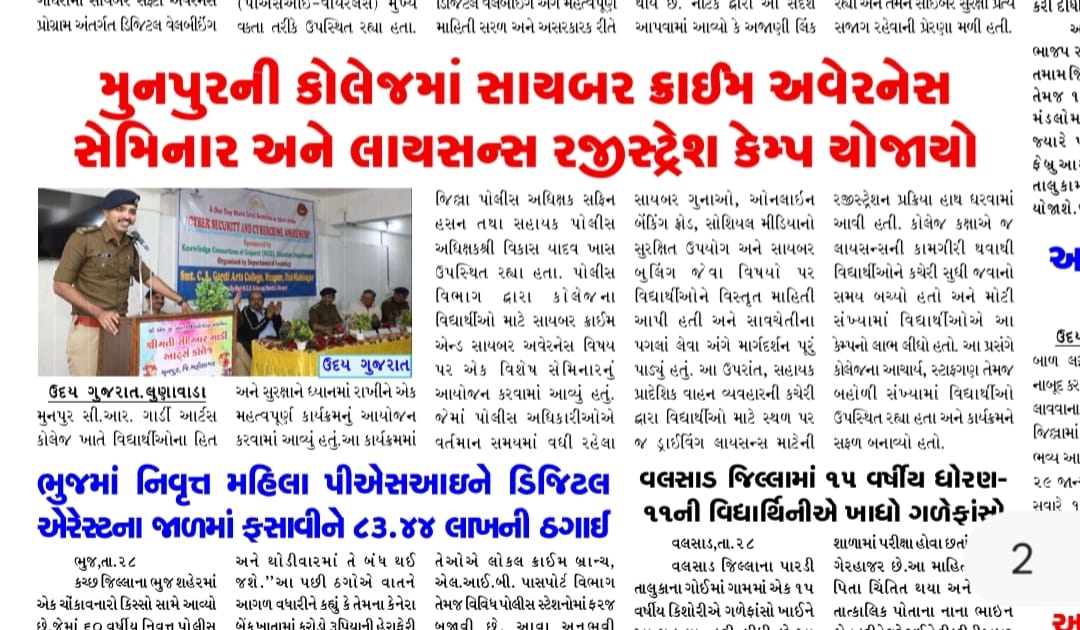સાઈબર ક્રાઈમ અને સાઈબર સિક્યુરિટી વિષય પર સેમિનારની સાથે લાયસન્સ રજીસ્ટ્રેશન કેમ્પ યોજાયો : 28/01/2026 |