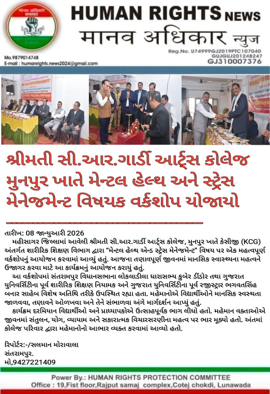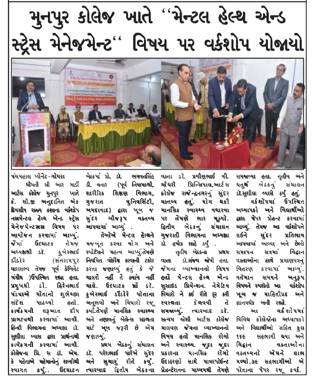 મેન્ટલ હેલ્થ એન્ડ સ્ટ્રેસ મેનેજમેન્ટ પર વર્કશોપ યોજાયો |