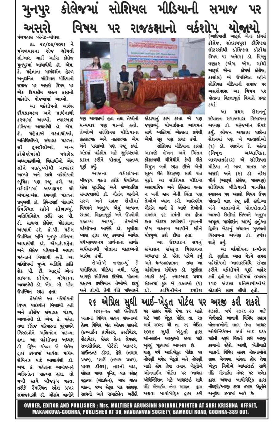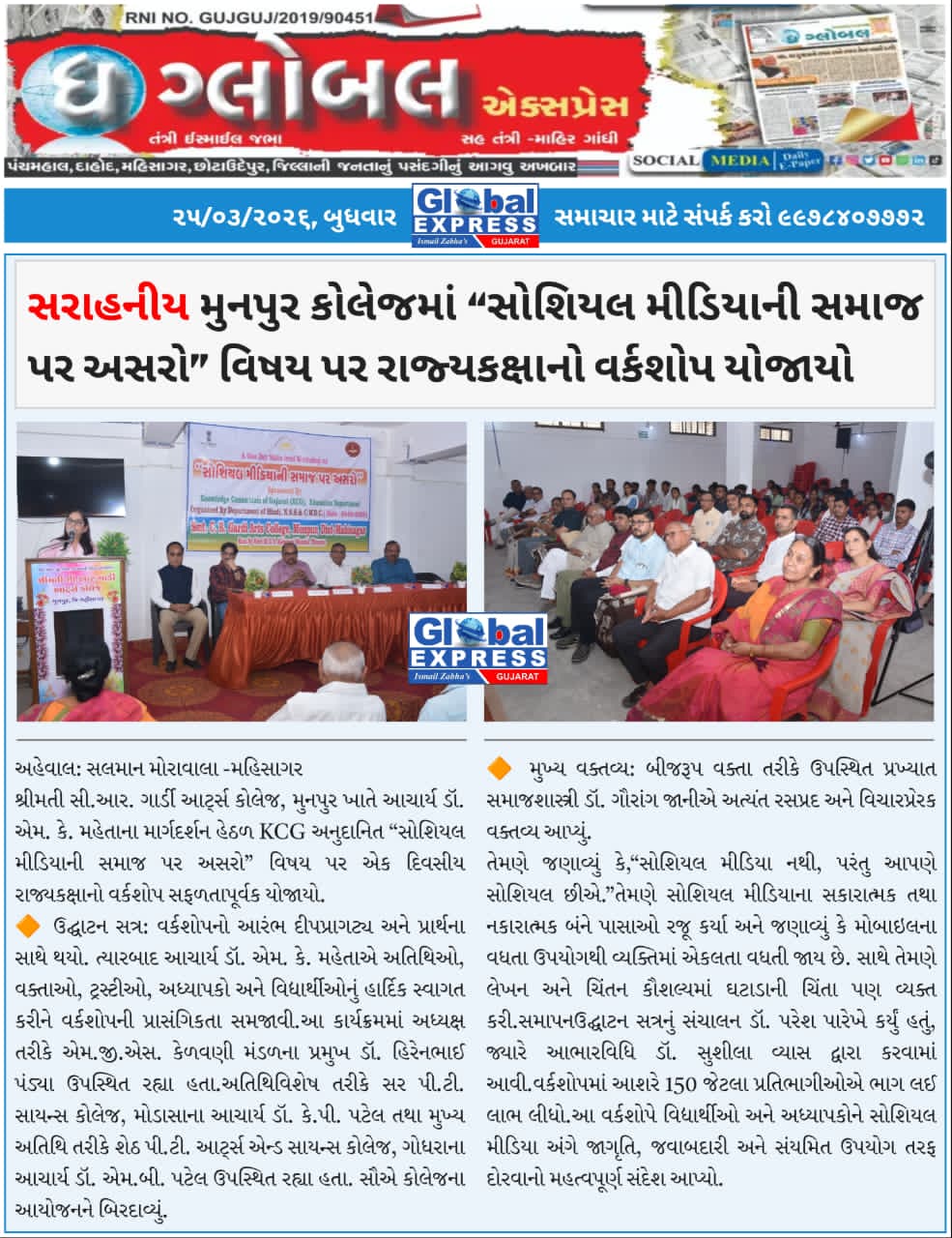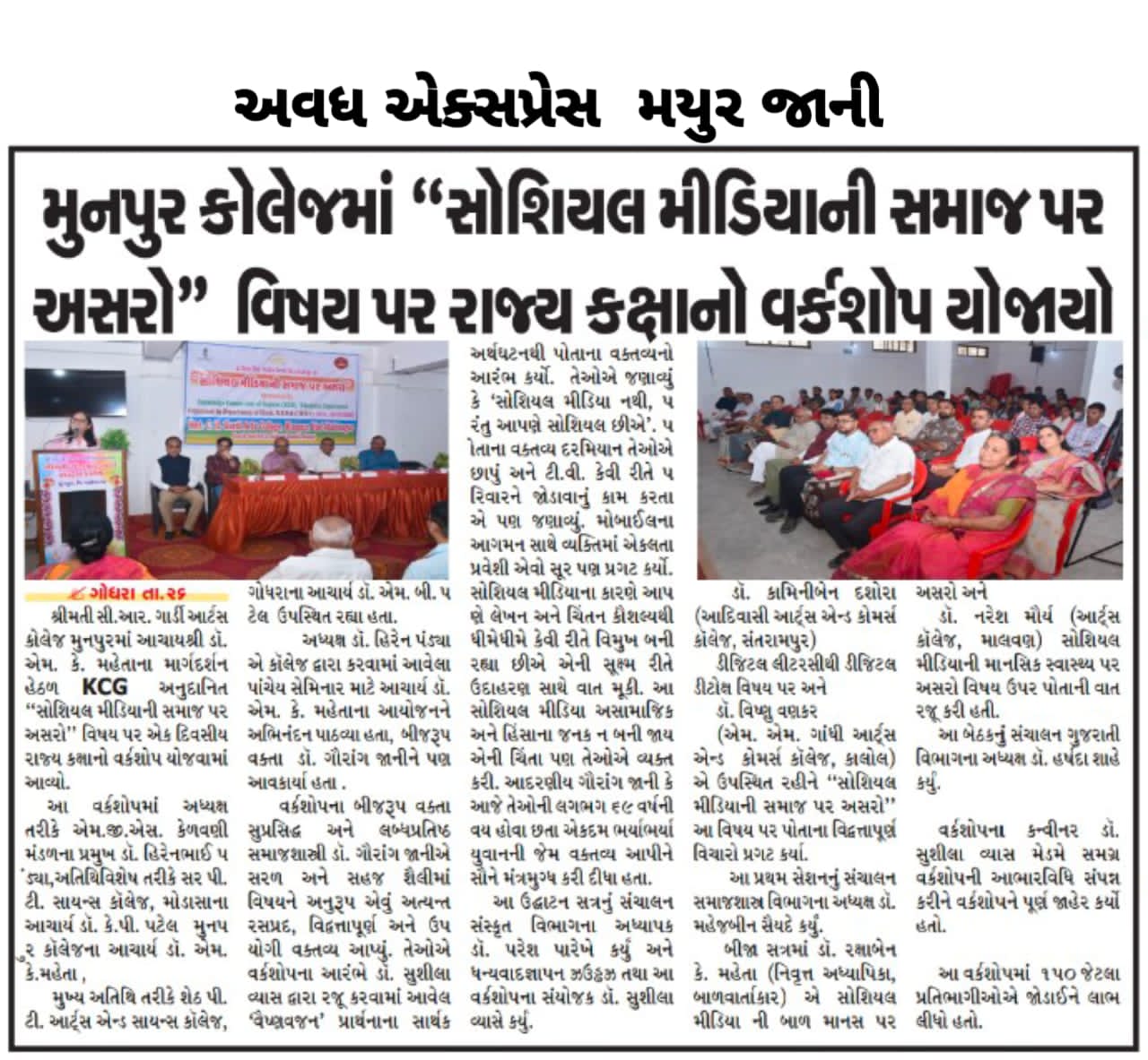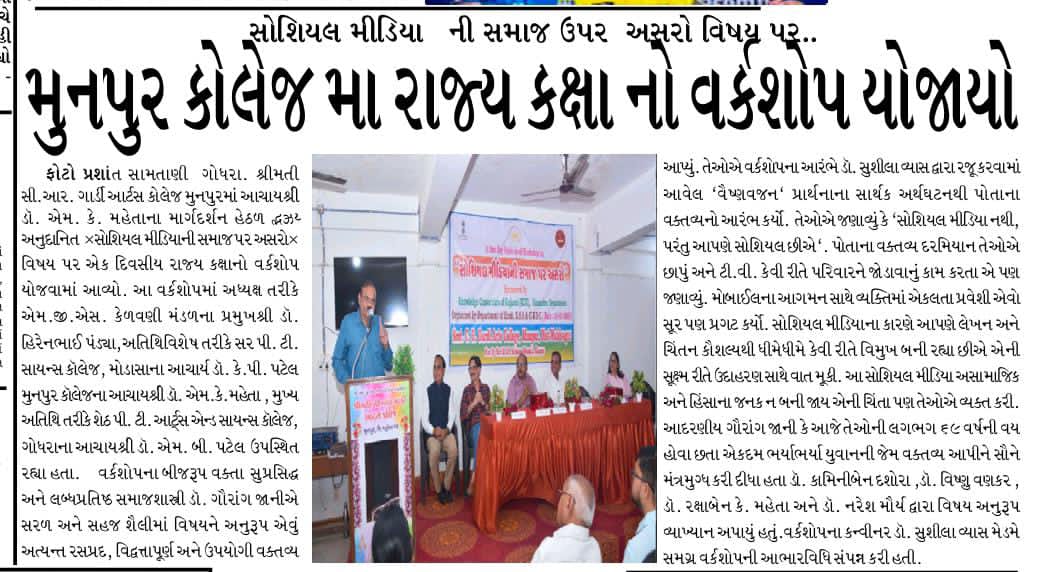 સોશિયલ મીડિયાની સમાજ પર અસરો વિષયક રાજ્યકક્ષાનો વર્કશોપ યોજાયો |